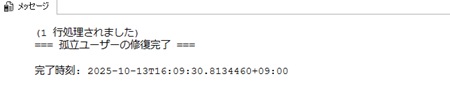 PRINT '=== 孤立ユーザーの修復完了 ===';