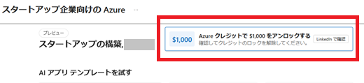 - [Azure クレジットで $1,000 をアンロックする LinkedInで確認] をクリックしてください。