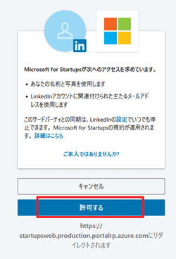 LinkedIn アカウントがスタートアップ向け Azure ポータルのサインインアカウントになります。