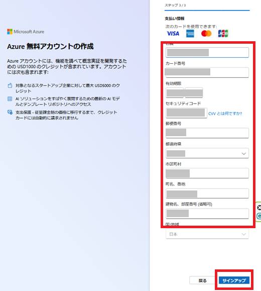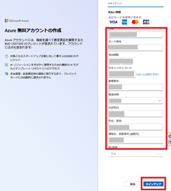 - クレジットカード情報を入力し、[サインアップ] をクリックしてください。
