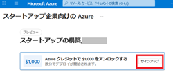 - [Azure クレジットで $1,000 をアンロックする サインアップ] をクリックしてください。