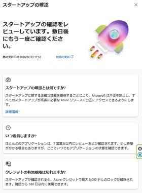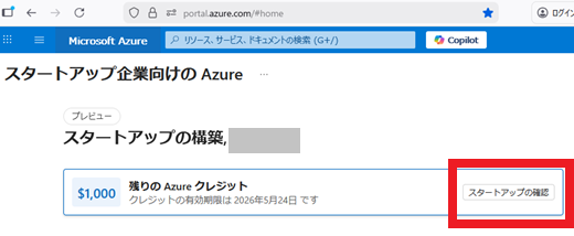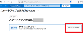 [残りの Azure クレジットで スタートアップの確認] をクリックしてください。