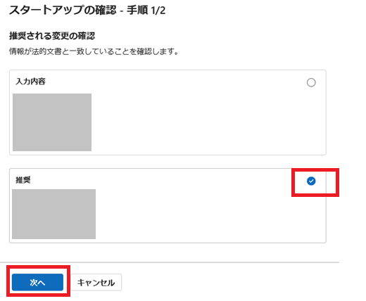 [スタートアップの確認] 画面です。