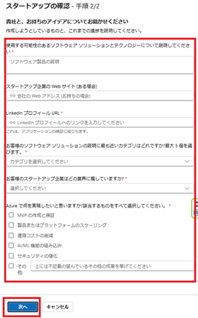 Microsoft for Startups Level 2 申請手順
