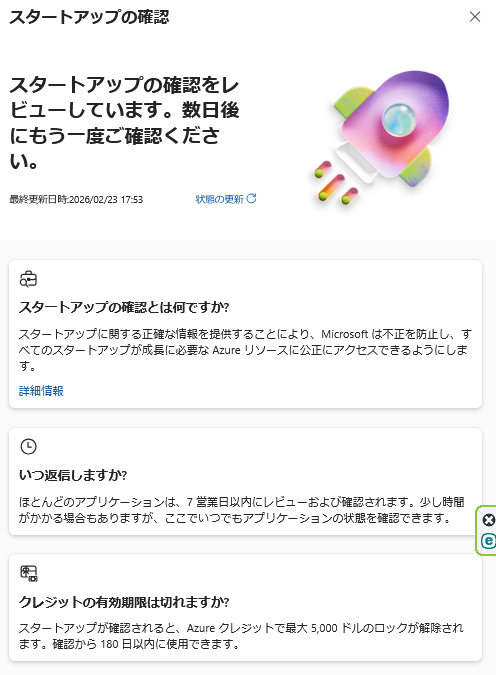 最大 $5,000 の Azure クレジット を受け取れるステージです。