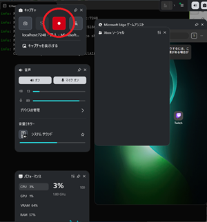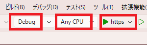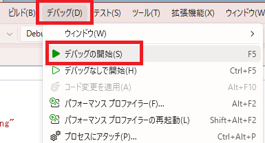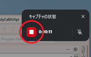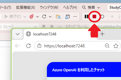 図で、[■] のマークをクリックするとデバッグは終了します。